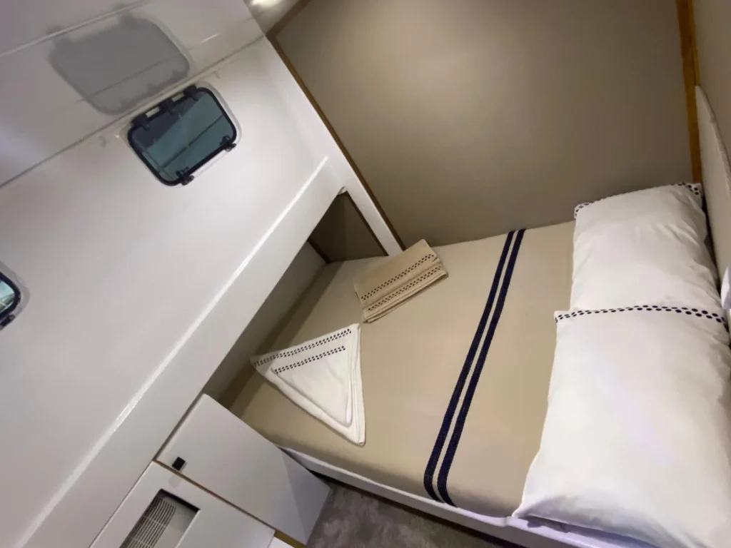 Gulet 1997’de üretildi ancak 2025’te yenilenen detayları sayesinde modern bir görünüm taşır. Jeneratör, güneş enerjisi sistemi ve güçlü klima altyapısı, her koşulda rahat bir atmosfer yaratır. Buz makinesi, televizyon, müzik sistemi ve Türk kahvesi makinesi gününüze keyif katar. İnternet bağlantısı sayesinde iletişim hiç kopmaz. Üstelik yüz, vücut ve ayak havluları temiz ve düzenli şekilde sizi bekler.