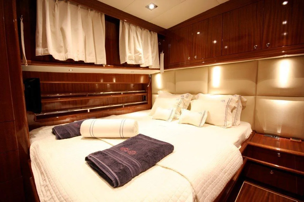 Teknede toplam 4 kabin bulunur. 2 master, 1 double ve 1 twin kabin farklı konaklama ihtiyaçlarına uyum sağlar. Her kabinde özel duş ve tuvalet yer alır. Ayrıca internet, televizyon ve saç kurutma makinesi günlük konforu artırır. Bu yüzden misafirler dinlenme anlarını keyifle yaşar. Kabin yerleşimi, aileler ve arkadaş grupları için dengeli bir yapı sunar.