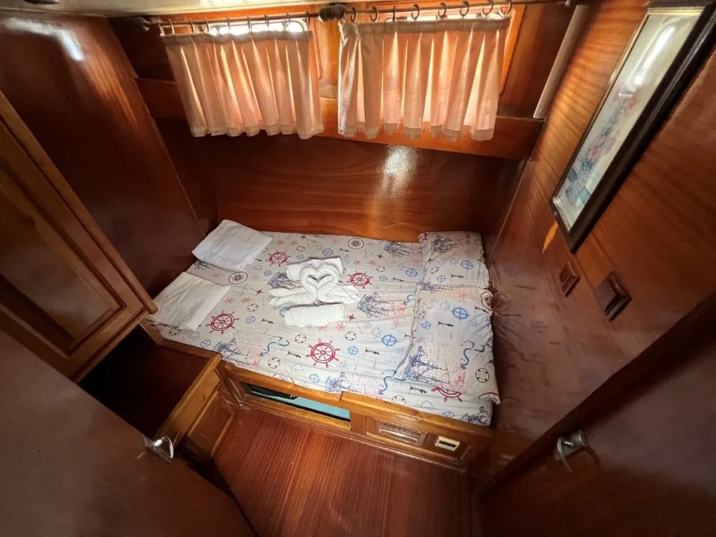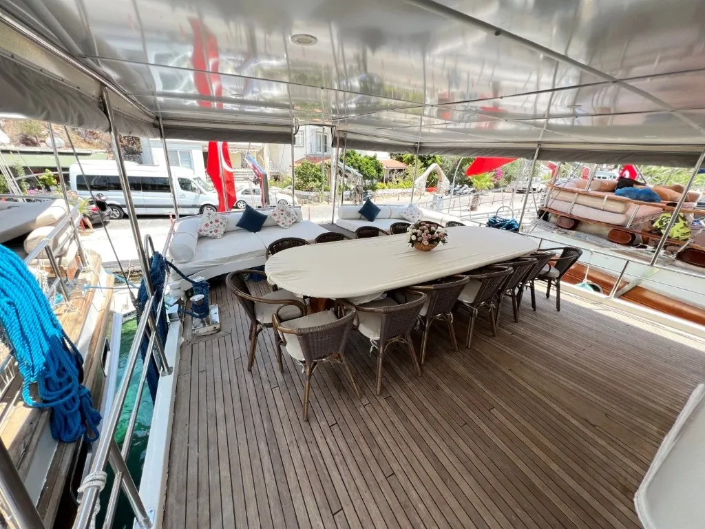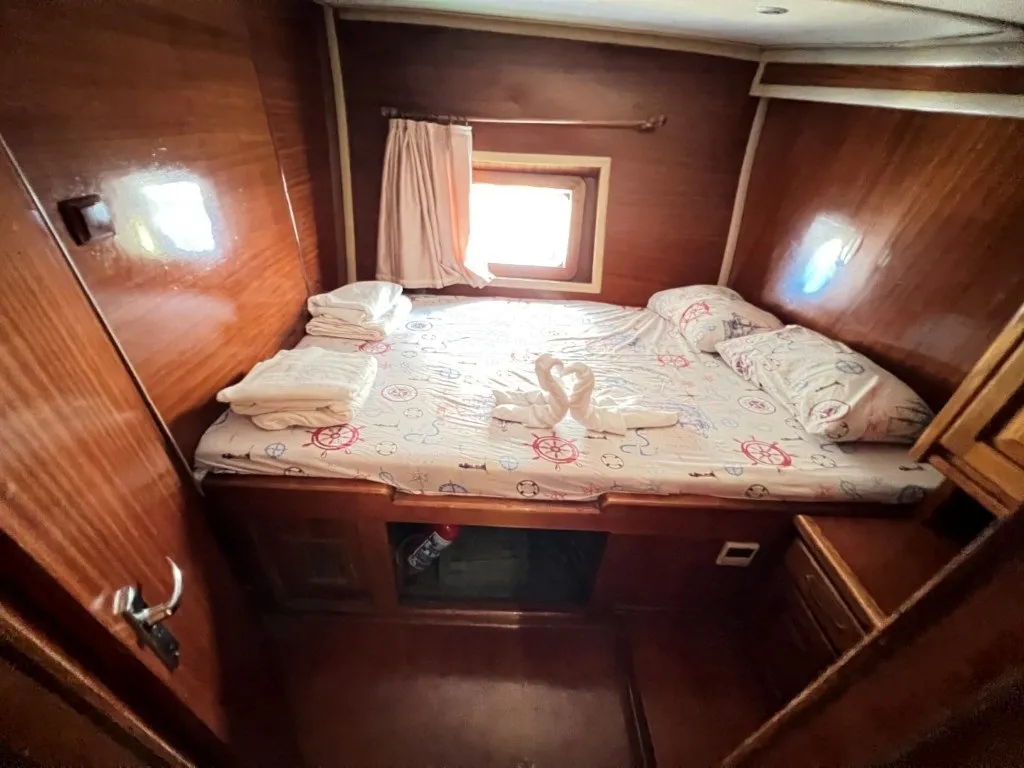 25 metre uzunluk ve 7 metre genişlik, teknede geniş ve dengeli bir yaşam alanı sunar. Ayrıca guletin sade yapısı sayesinde doğayla daha yakın bir deneyim hissedersiniz. Bu yüzden tatil boyunca sakin ve rahat bir tempo yakalarsınız. 2000 yapımı tekne, 2021 yenilemesiyle daha düzenli bir hale gelir. Böylece tekneye adım attığınız anda temiz ve sade bir atmosfer sizi karşılar.