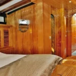 Teknede toplam 7 kabin yer alır. 1 master kabin, 4 double kabin ve 2 twin kabin, farklı konaklama ihtiyaçlarına uyum sağlar. Her kabinde özel duş ve tuvalet bulunur. Ayrıca internet, televizyon ve saç kurutma makinesi günlük yaşamı kolaylaştırır. Böylece herkes kendine ait rahat bir alan bulur. Kabin yerleşimi, mahremiyet ve konforu dengeli biçimde sunar.