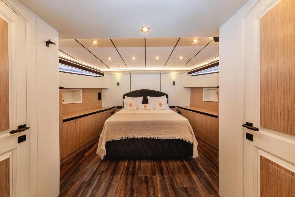 Teknede toplam 4 kabin yer alır. VIP kabin, master kabin ve iki twin kabin farklı beklentilere uyum sağlar. Her kabin özel duş ve tuvalet içerir. İnternet bağlantısı ve televizyon, denizdeyken bile günlük alışkanlıklarınızı sürdürmenizi kolaylaştırır. Böylece herkes kendine ait rahat bir alan kullanır. Kabin düzeni, mahremiyet ve konfor dengesini güçlü biçimde kurar.