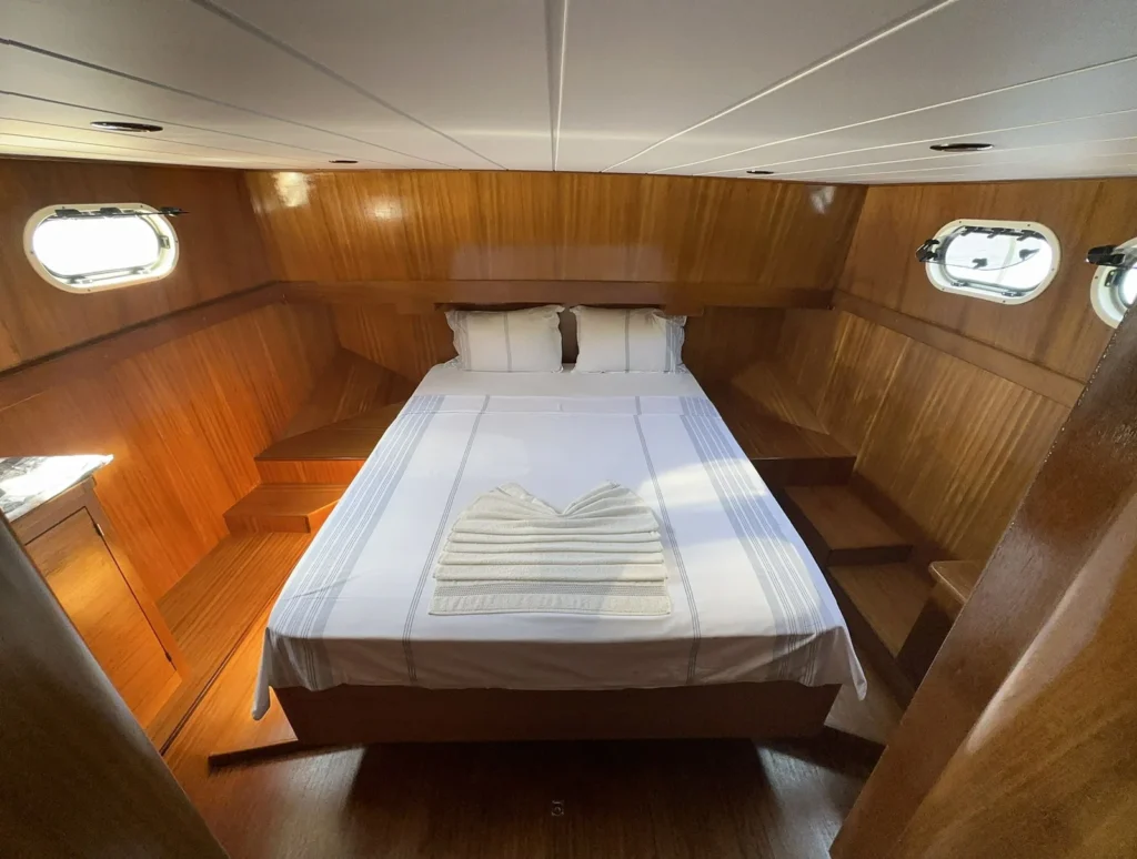 Yakıt ve su tankı kapasitesini ekip seyir planına göre düzenler. Bu yüzden yolculuk boyunca konforunuz devam eder. Ayrıca ayrı personel kabini sayesinde yaşam alanı tamamen size kalır. Böylelikle tatiliniz daha sakin ve özgür geçer.