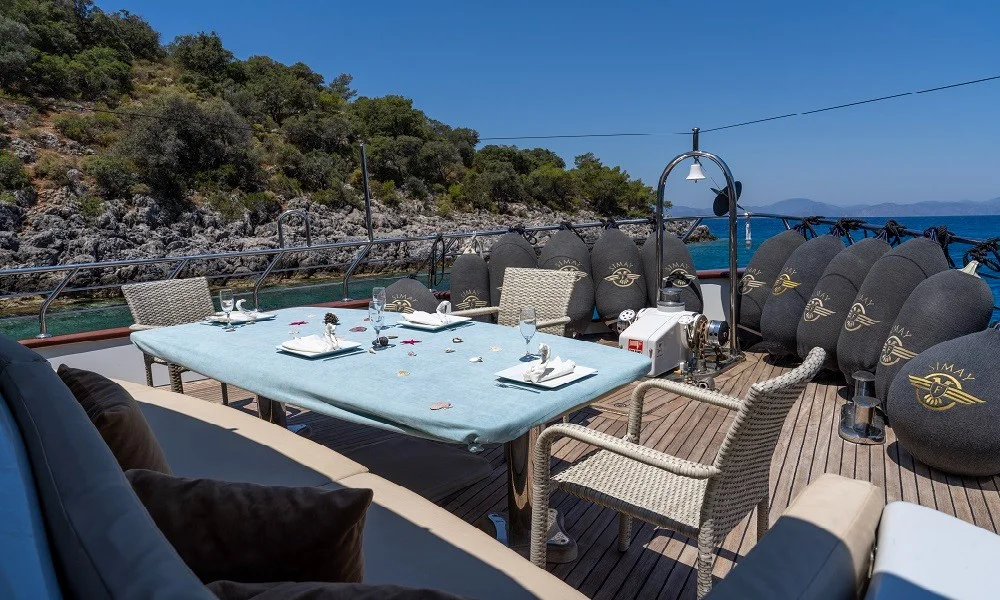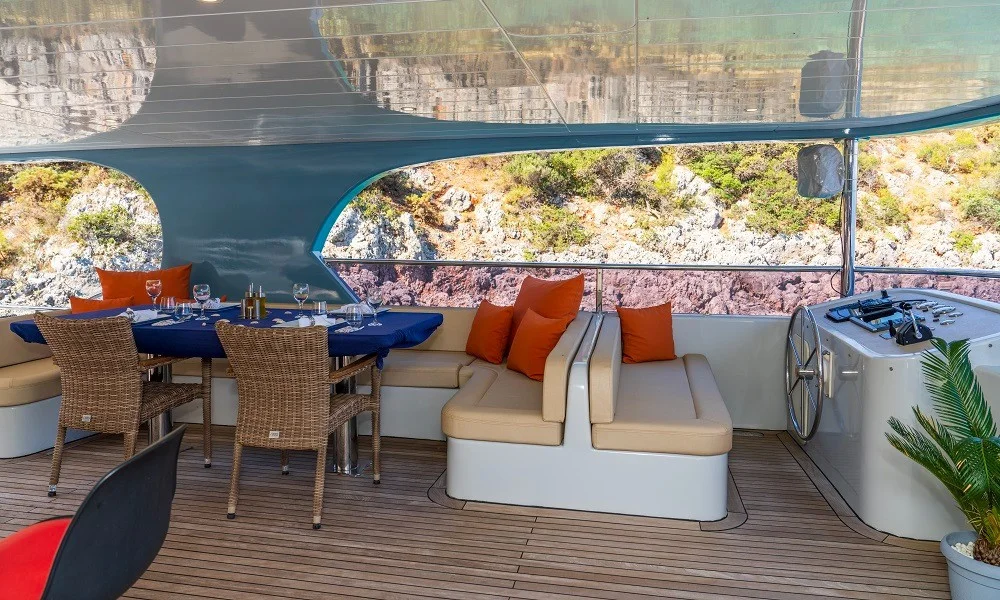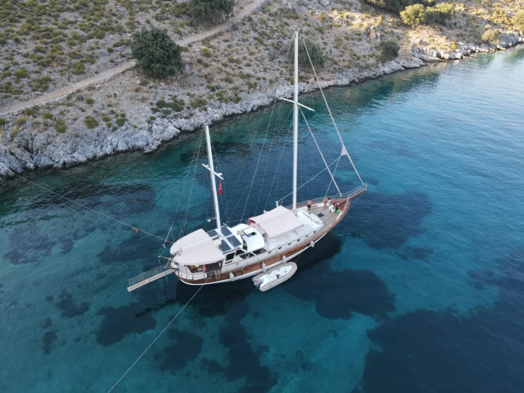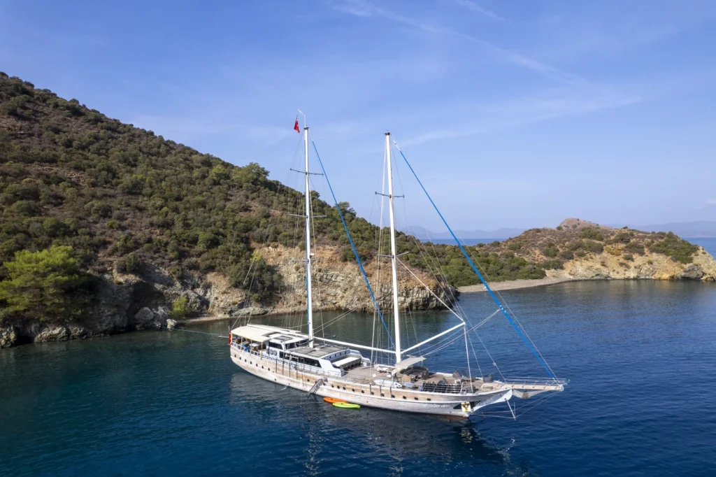 Dört kişilik mürettebat tatiline güçlü bir düzen ekler. Kaptan her rotayı net bir planla yönetir. Aşçı taze malzemelerle lezzetli tabaklar hazırlar. İki gemici/hostes ise güverteden servise kadar her alanı düzenli tutar. Böylece sürekli akıcı bir hizmet döngüsü oluşur.