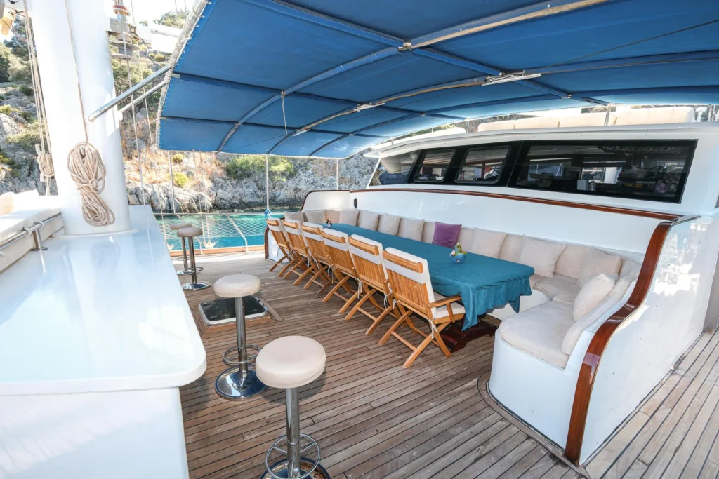 Fethiye büyük gulet kiralama deneyimine lüks ve genişlik katan özel bir atmosfer sunar.