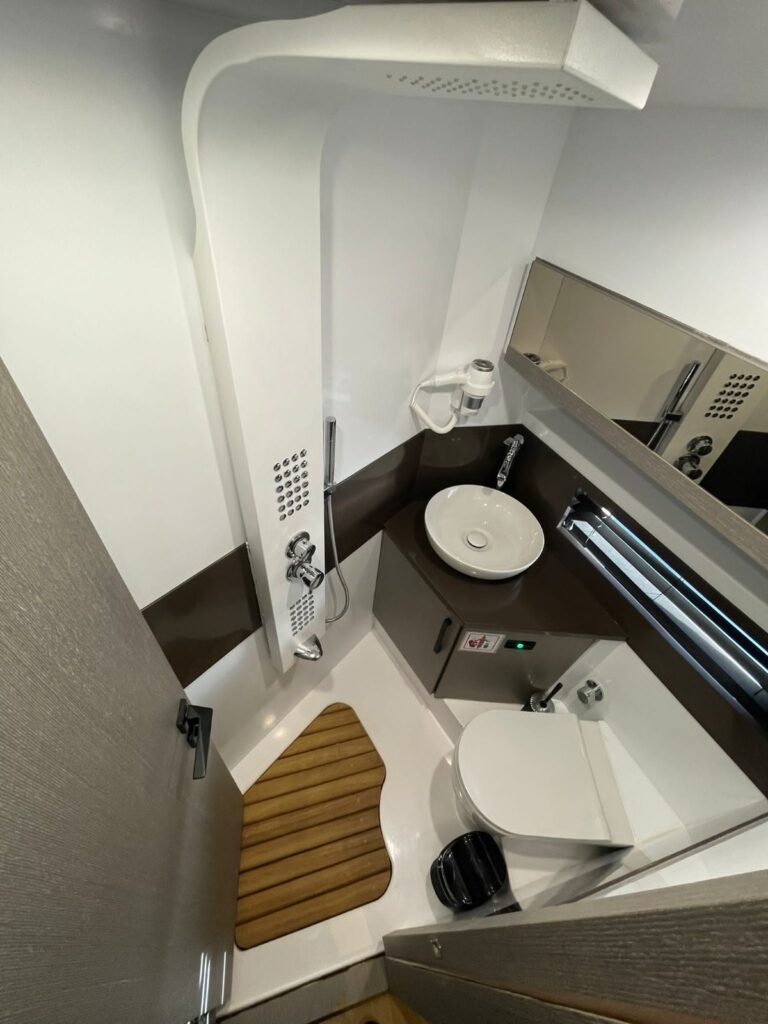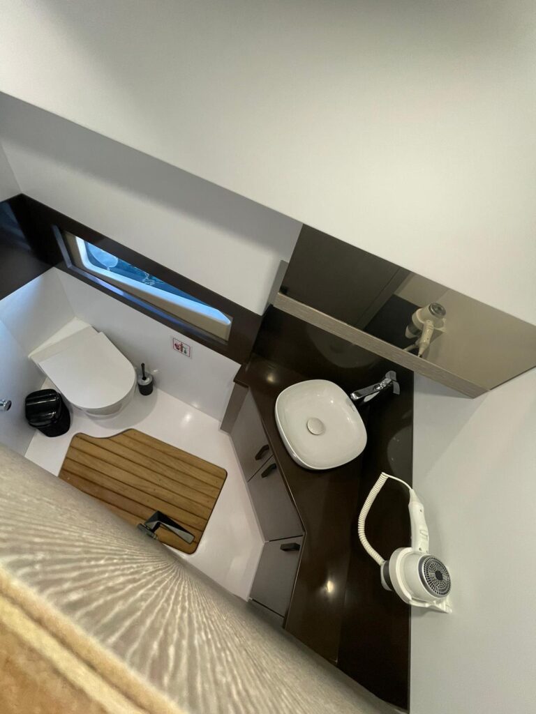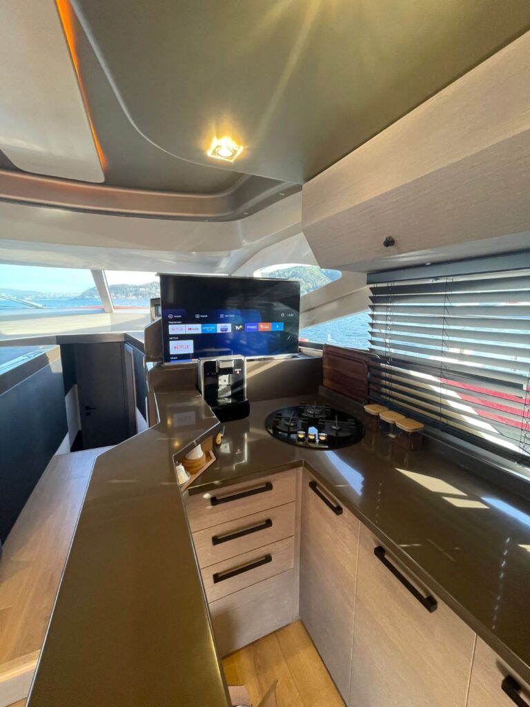 Bu motoryat 2021’de yenilendi ve böylece iç alan daha modern bir çizgiye kavuştu. Tam donanımlı mutfak pratik bir kullanım sunar. Sıcak su altyapısı, güneş enerjisi ve su tankları günlük akışı kolaylaştırır. Webasto soğuk akşamlarda ortamı hızlıca ısıtır. Jeneratör ise her rotada kesintisiz enerji sağlar. İnternet, televizyon ve müzik sistemi iç mekâna keyifli bir dinamizm ekler. Yüz, vücut ve ayak havluları günlük düzeni destekler.