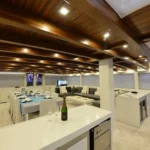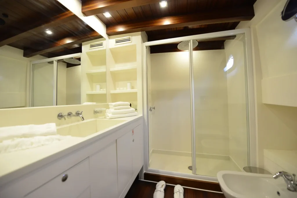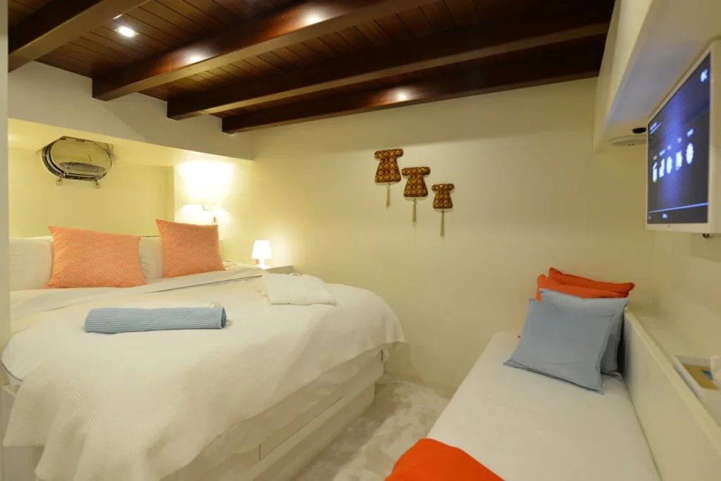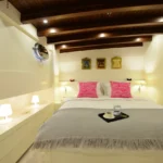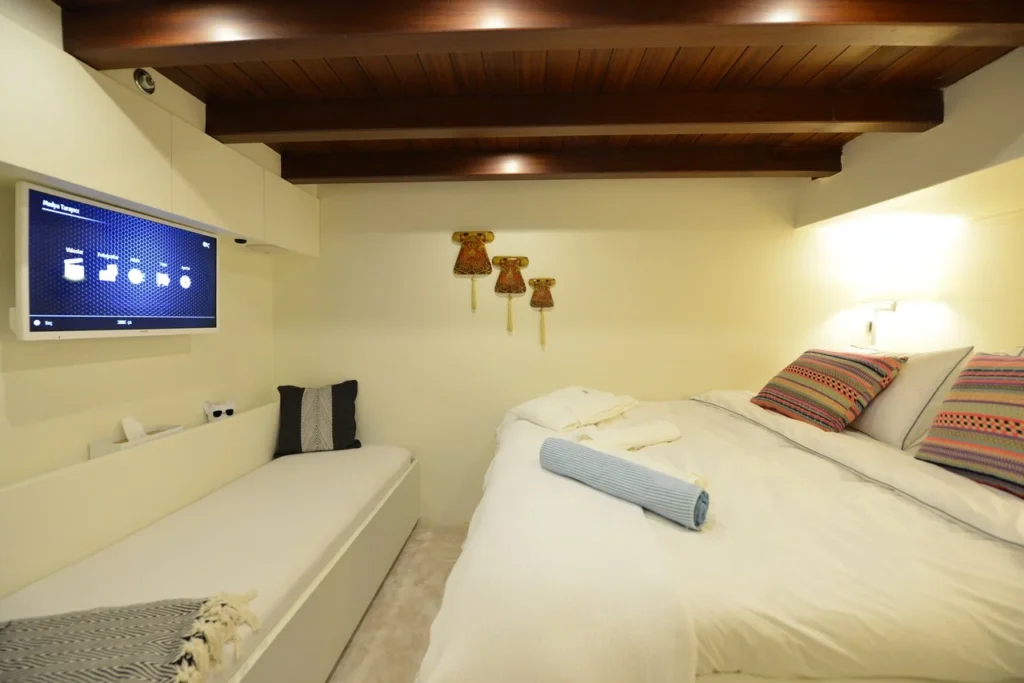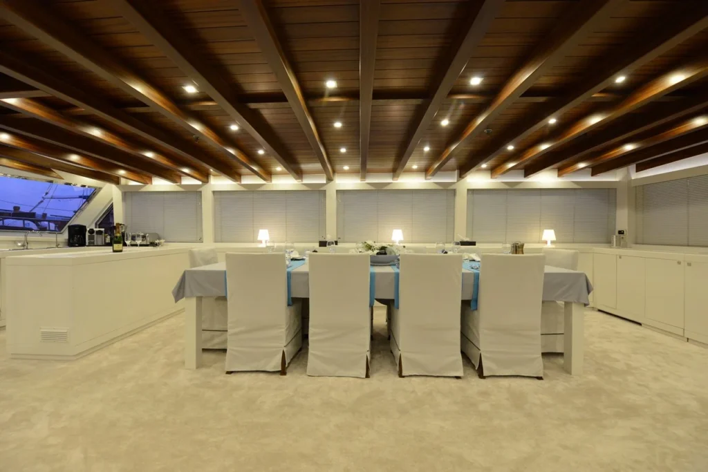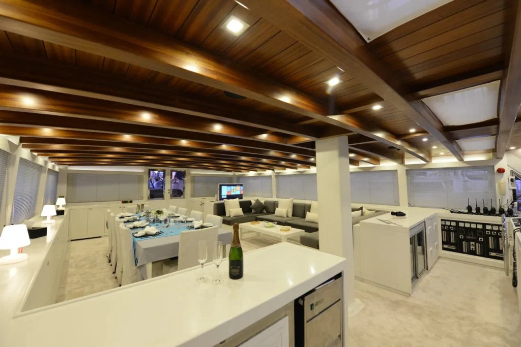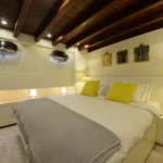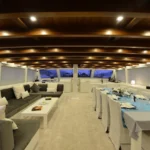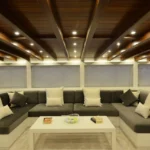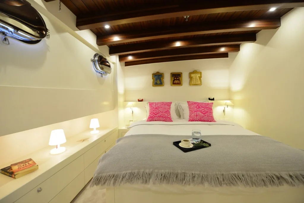 Bodrum ultra lüks gulet kiralama arayan misafirler bu 38 metrelik teknede ayrıcalıklı bir yaşam alanı deneyimler. Öncelikle beş kabinli yerleşim, konforu üst seviyeye taşır. İki master, iki double ve bir suit master kabin, her misafire özel alan hissi sunar. Ayrıca her kabindeki duş ve tuvalet günlük rahatlığı artırır. Bununla birlikte 8,30 metrelik genişlik, hem iç mekânda hem güvertede ferah bir atmosfer oluşturur. Klima sistemi 24 saat aktif çalışır. Böylece günün her anında ideal sıcaklık korunur.